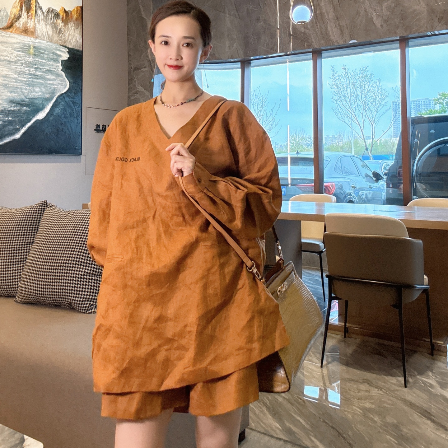 巨好看的夏天套装时尚洋气减龄显瘦遮肉两件套亚麻上衣短裤一整套