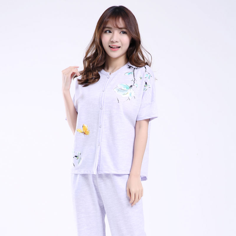 夏款女装睡衣女夏全棉短袖七分裤纯棉套装夏天可外穿家居服两件套