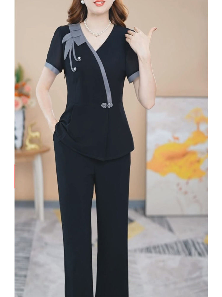 气质短袖两件套女2025夏天新款洋气修身减龄显瘦高档时尚黑色套装