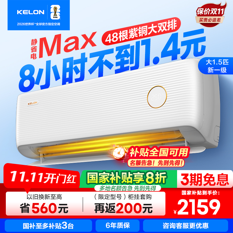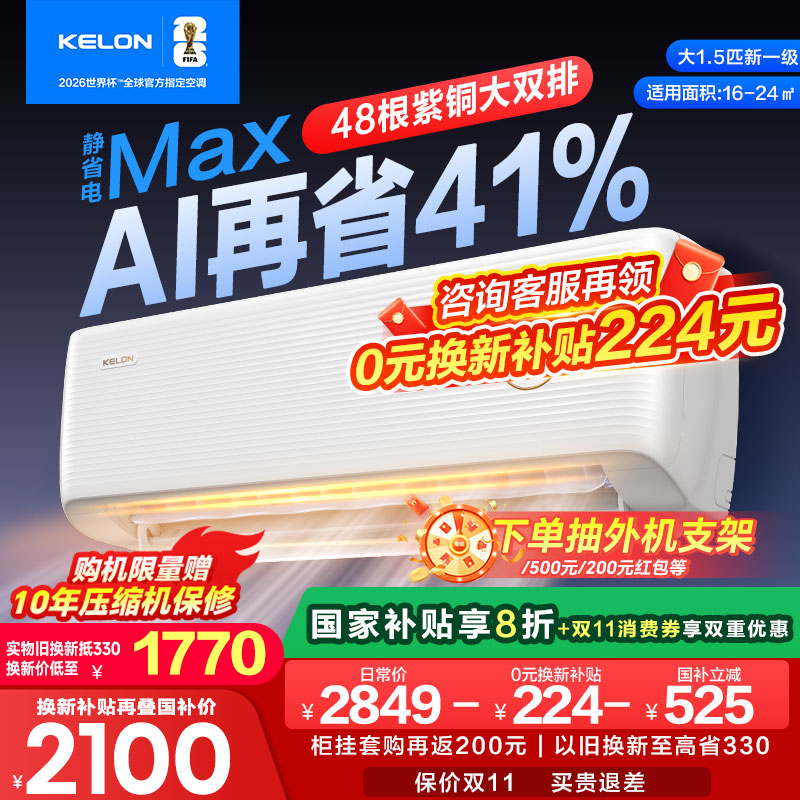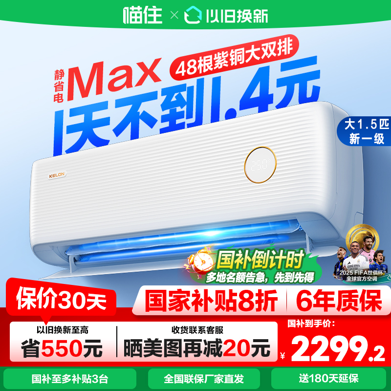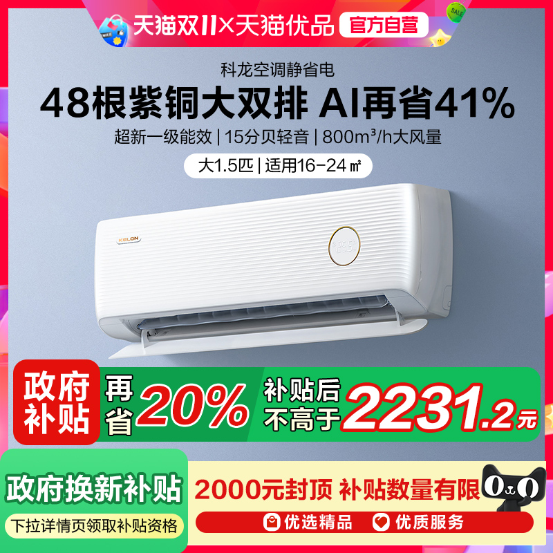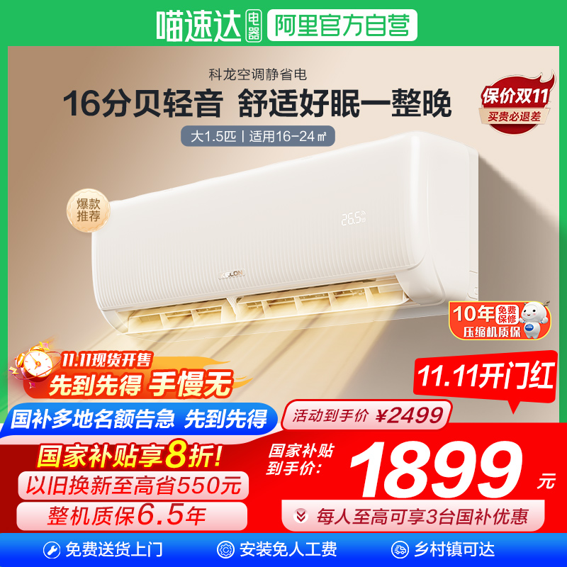 国补享8折科龙空调静省电Max大1.5匹一级能效家用冷暖卧室挂机
