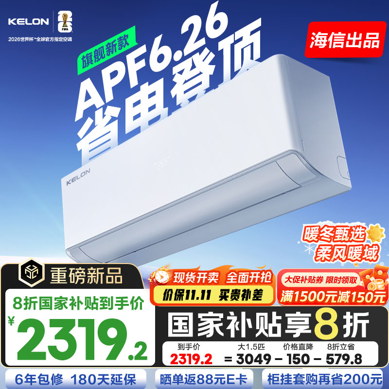 海信KELON空调静省电1.5匹一级能效家用冷暖变频挂机以旧换新补贴