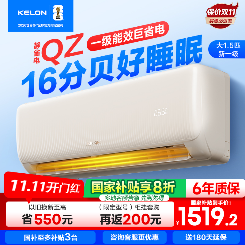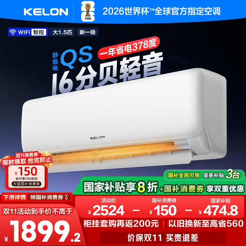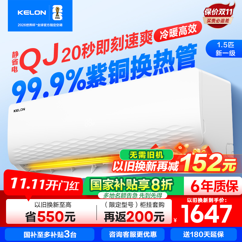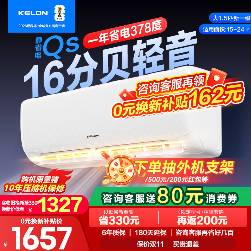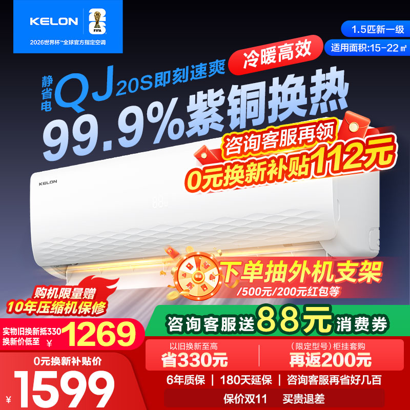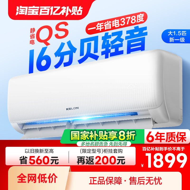 科龙空调静省电QJ 家用挂机1.5匹新一级能效卧室以旧换新补贴