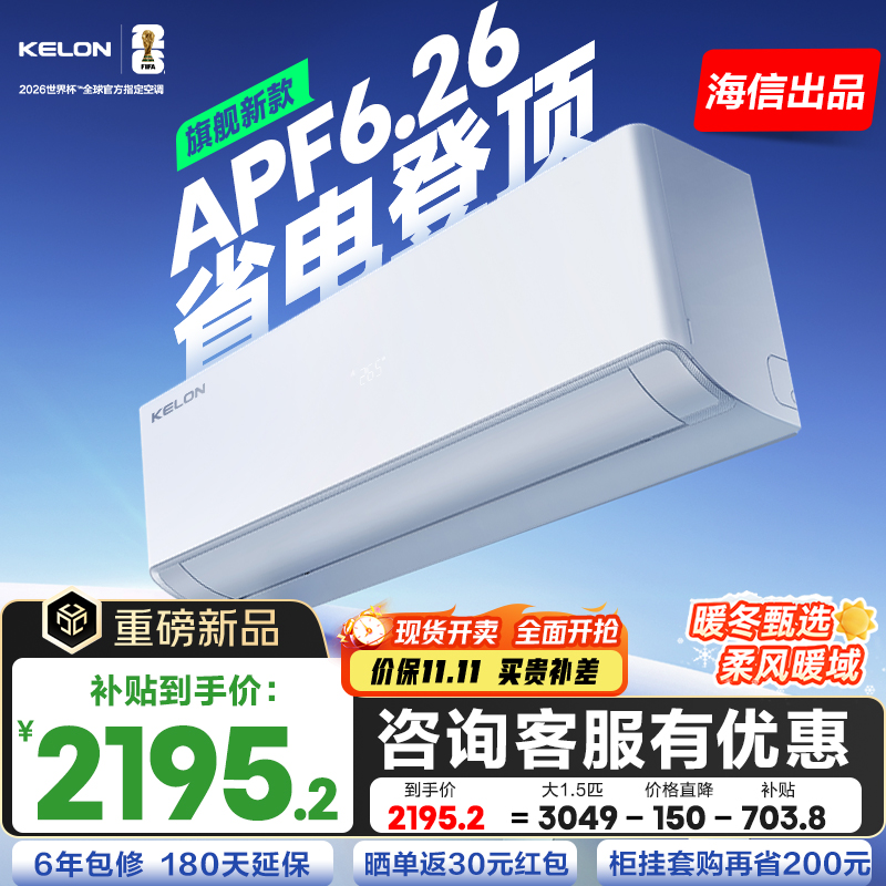 海信KELON空调静省电Ultra大1.5匹新一级冷暖变频大双排家用挂机