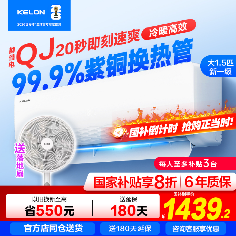 【国家补贴8折】科龙空调静省电1.5匹大风量新一级冷暖挂机33QJ