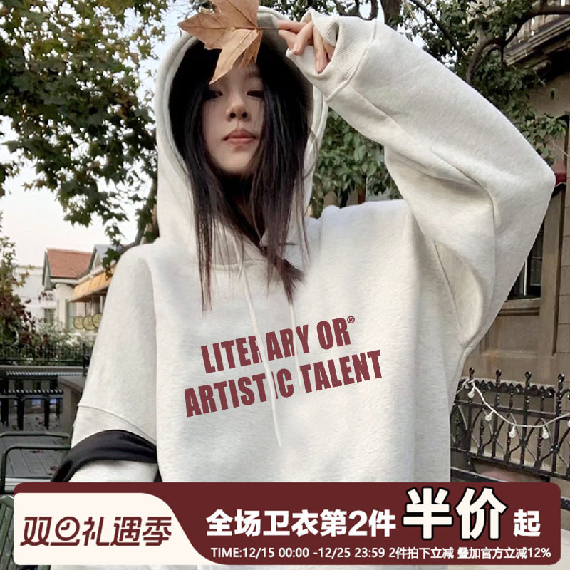 - 韩版宽松加绒卫衣女