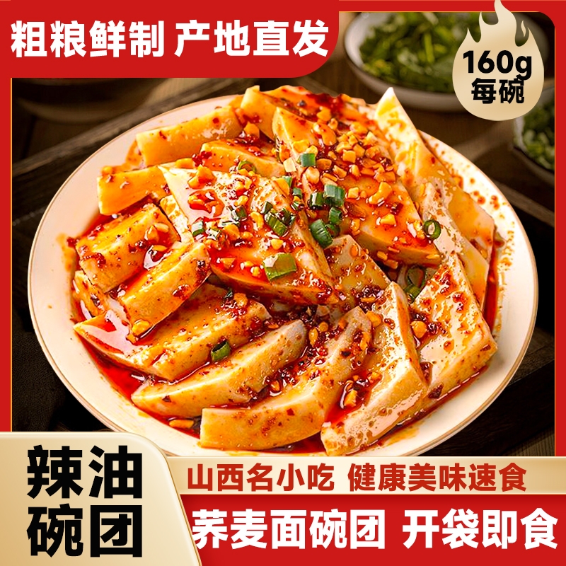 山西特产柳林荞歌碗团160g吕梁小吃乔哥荞面碗秃碗坨香辣红油碗托
