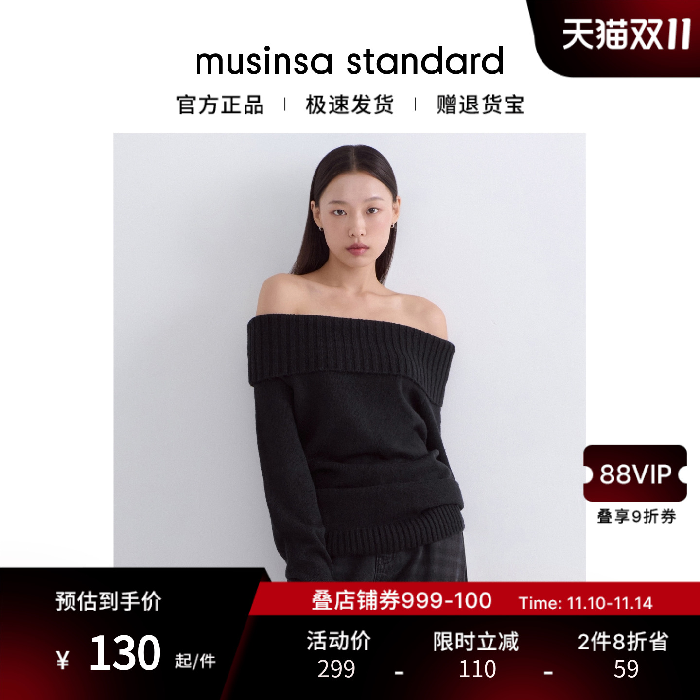 韩国25秋冬女士一字翻领露肩针织衫宽松温柔毛衣musinsa standard