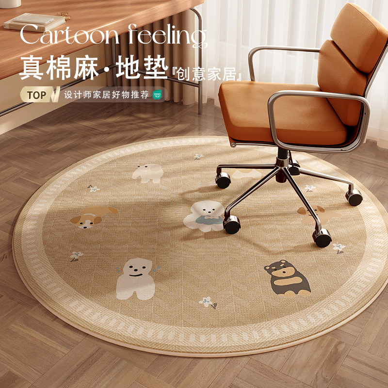 仿亚麻书房地毯圆形转椅电脑椅垫儿童房书桌椅子垫学习桌地垫隔音