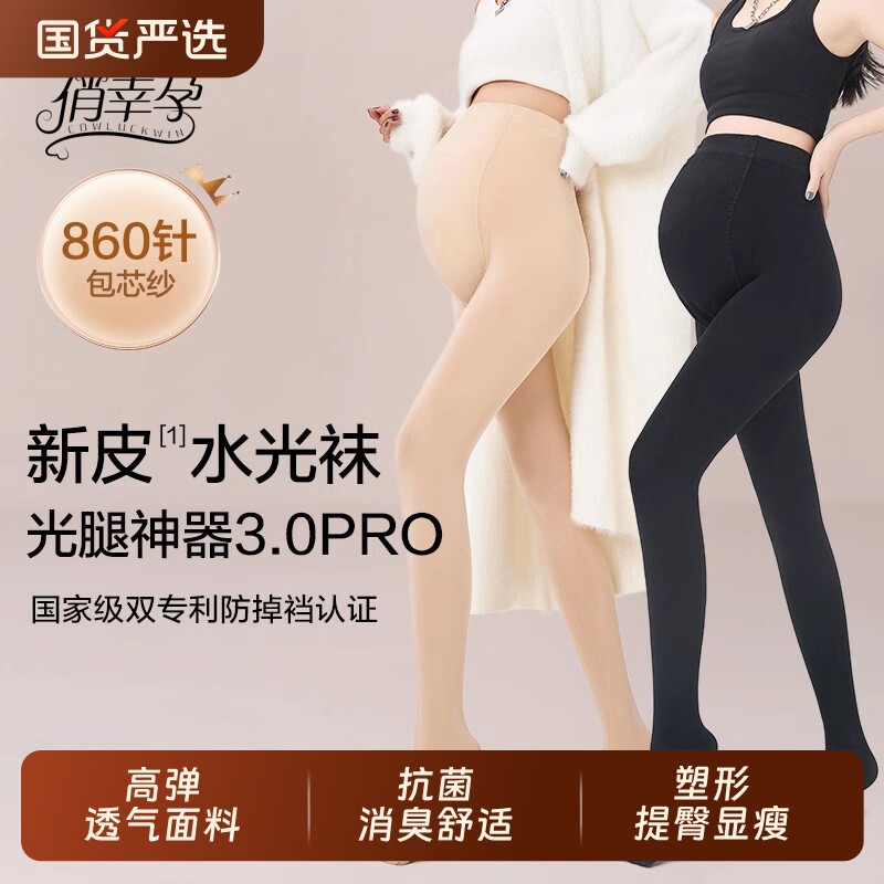 孕妇丝袜不勒肚子光腿肉色水光袜托腹可调节打底袜春秋冬薄绒中厚