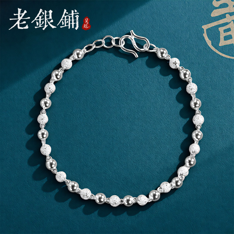 吴越老银铺足银990纯银手链女转运珠串珠复古简约民族风生日礼物