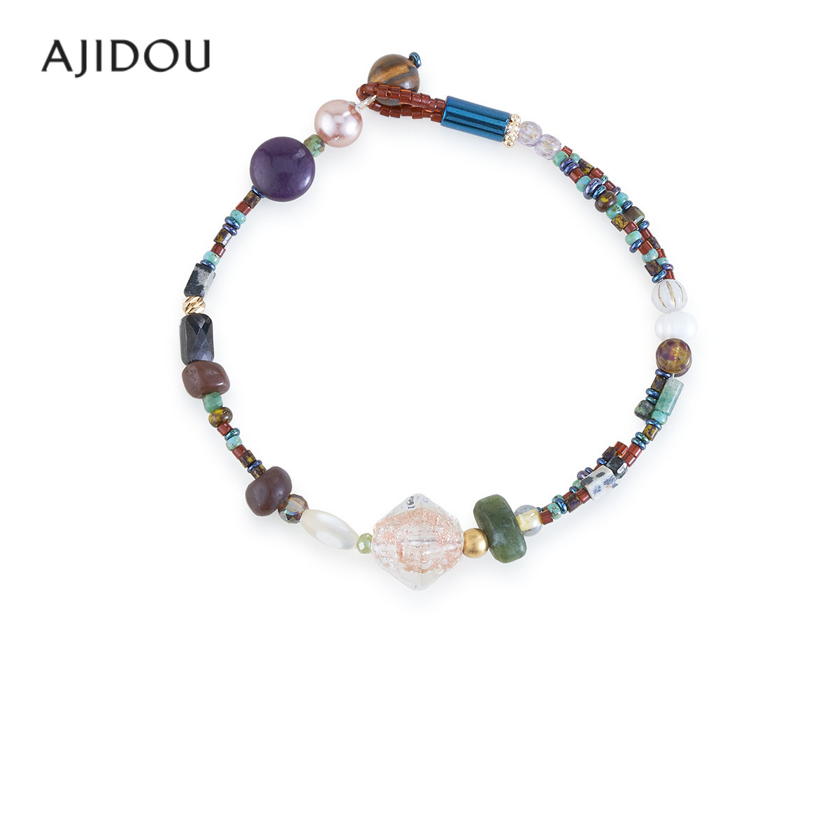 AJIDOU阿吉豆手链女款多巴胺琉璃手串复古民族风串珠高级感手饰品