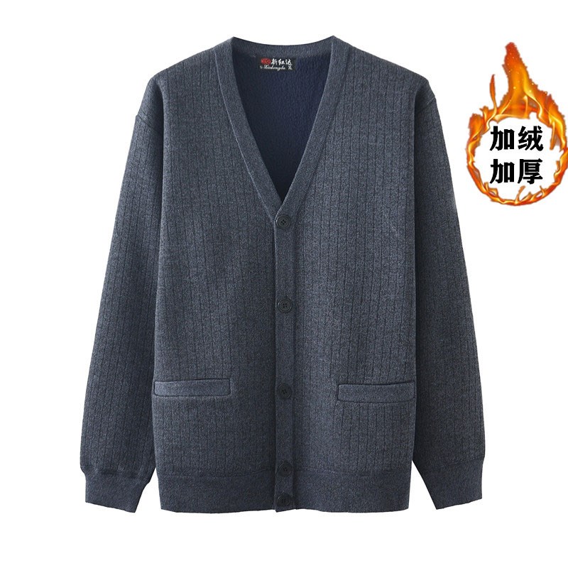 反季特价清仓处理纯色针织开衫男春秋中老年休闲毛衣爸爸加厚外套