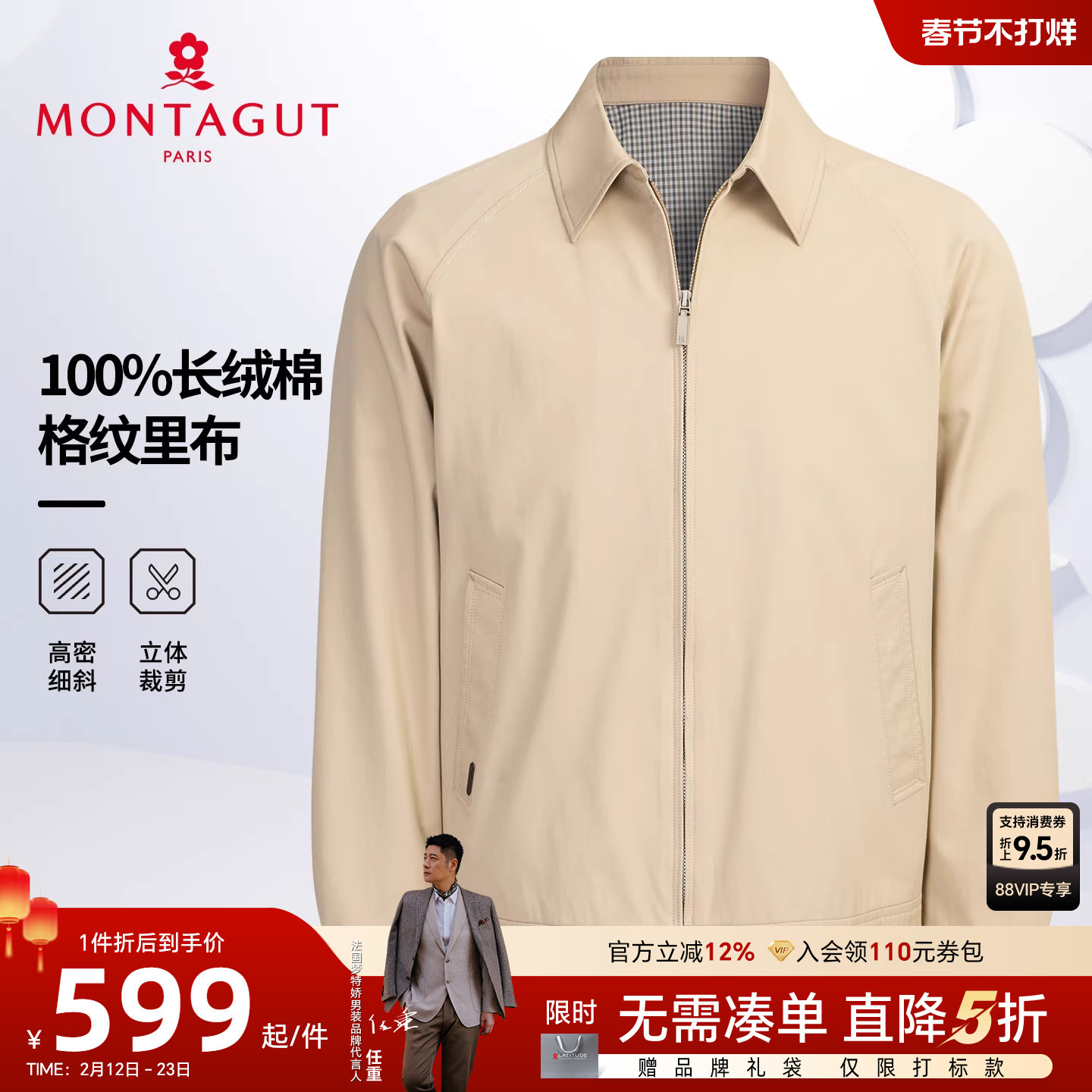 [纯棉/老钱风]梦特娇男士夹克翻领26春款高密100%棉外套格纹休闲C