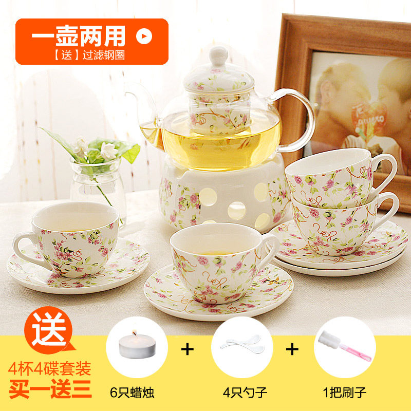 花茶杯水果茶壶套装 陶瓷下午茶茶具套装英式壶茶具家用蜡烛加热