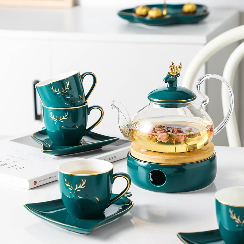 花茶杯水果茶壶套装下午茶茶具陶瓷轻奢茶杯玻璃茶具家用蜡烛加热