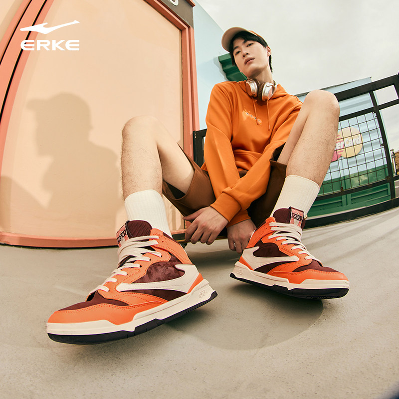 鸿星尔克男鞋女鞋2025时尚板鞋高帮小白鞋运动滑板鞋11122301285