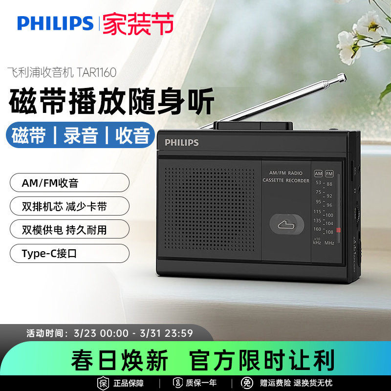 飞利浦TAR1160磁带播放机调频FM收音机四六级英语听力考试带录音