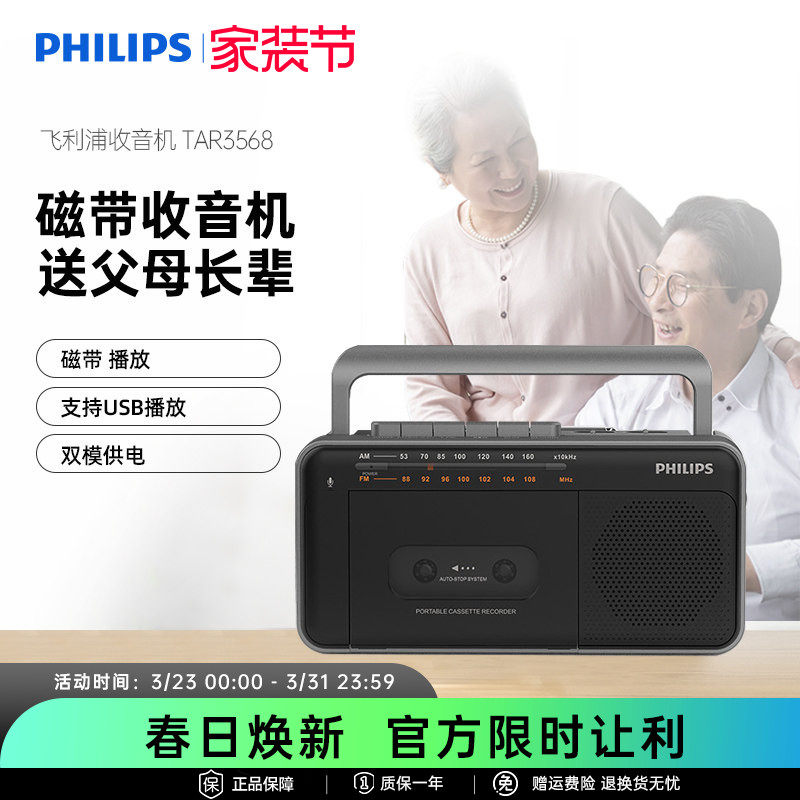 飞利浦TAR3568老年FM调频收音机便携式磁带播放录音收录播放一体