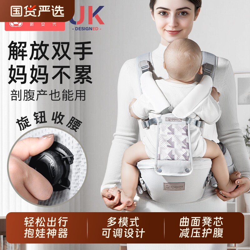 布兜妈妈新款抱娃神器解放双手婴幼儿腰凳背带四季通用多功能坐凳