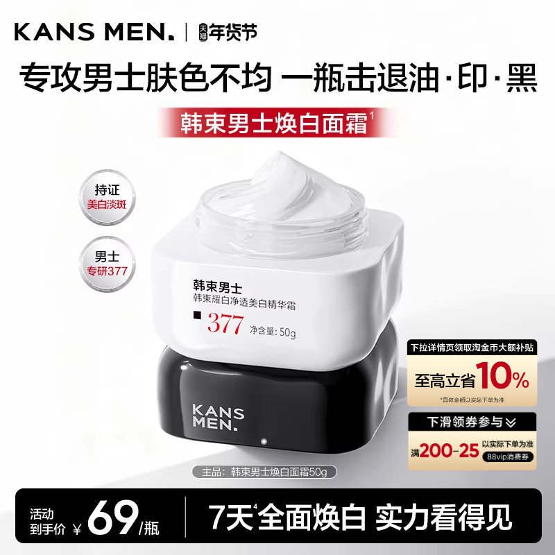 韩束男士美白面霜补水滋润美白淡斑痘印祛斑护肤品男生精华露正品