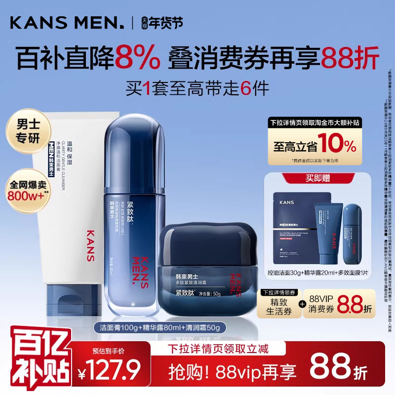 韩束男士护肤品水乳精华露乳液补水紧致肽面霜洗面奶保湿礼物套装