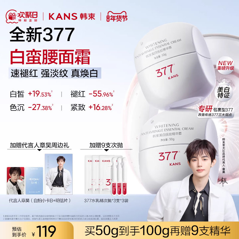 【章昊同款】韩束377白蛮腰面霜3.0美白祛斑褪红抗皱紧致补水焕亮