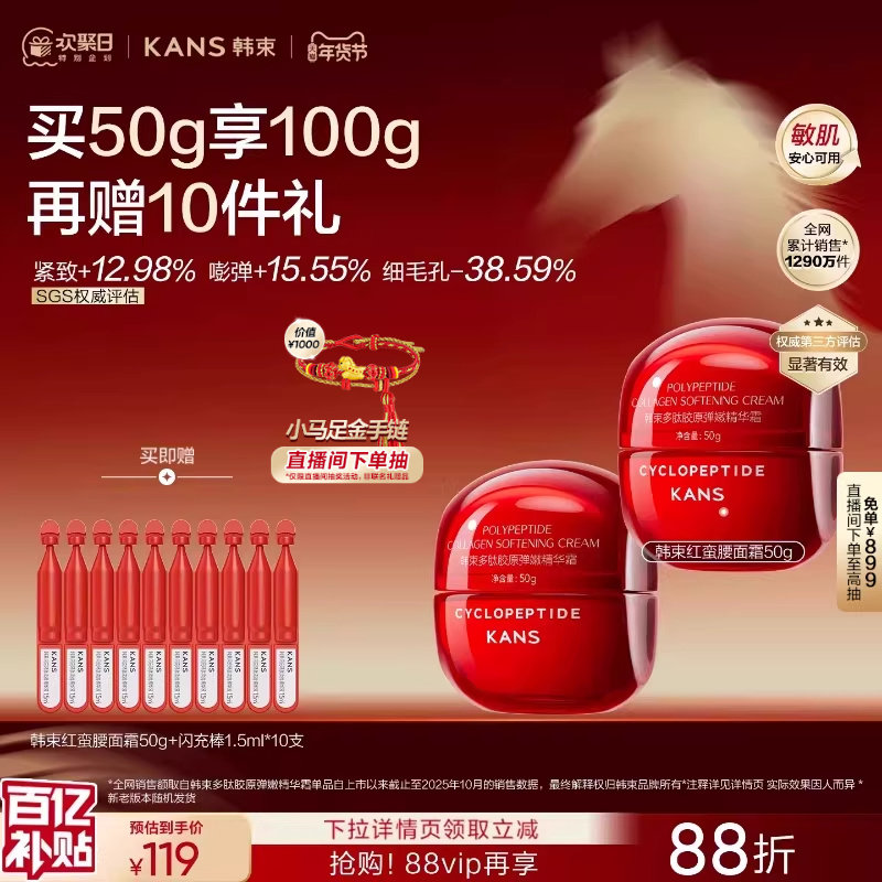 韩束面霜红蛮腰弹嫩精华霜补水保湿紧致抗糖抗氧滋润霜官方正品店