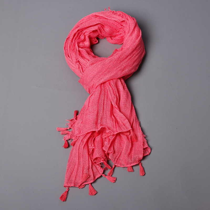 2023春夏新品棉麻流苏围巾女纯色大披肩两用百搭海边防晒沙滩丝巾