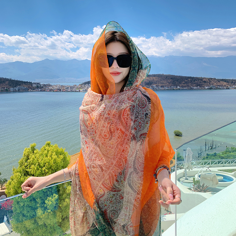 民族风防晒大披肩云南丽江旅游穿搭海边丝巾女夏季沙滩围巾外搭薄