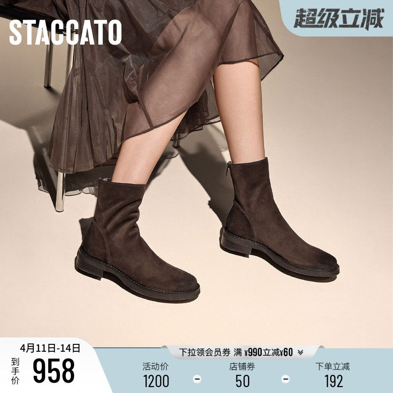思加图新款复古倒靴时装靴英伦风短靴瘦瘦靴女靴B8111DD5