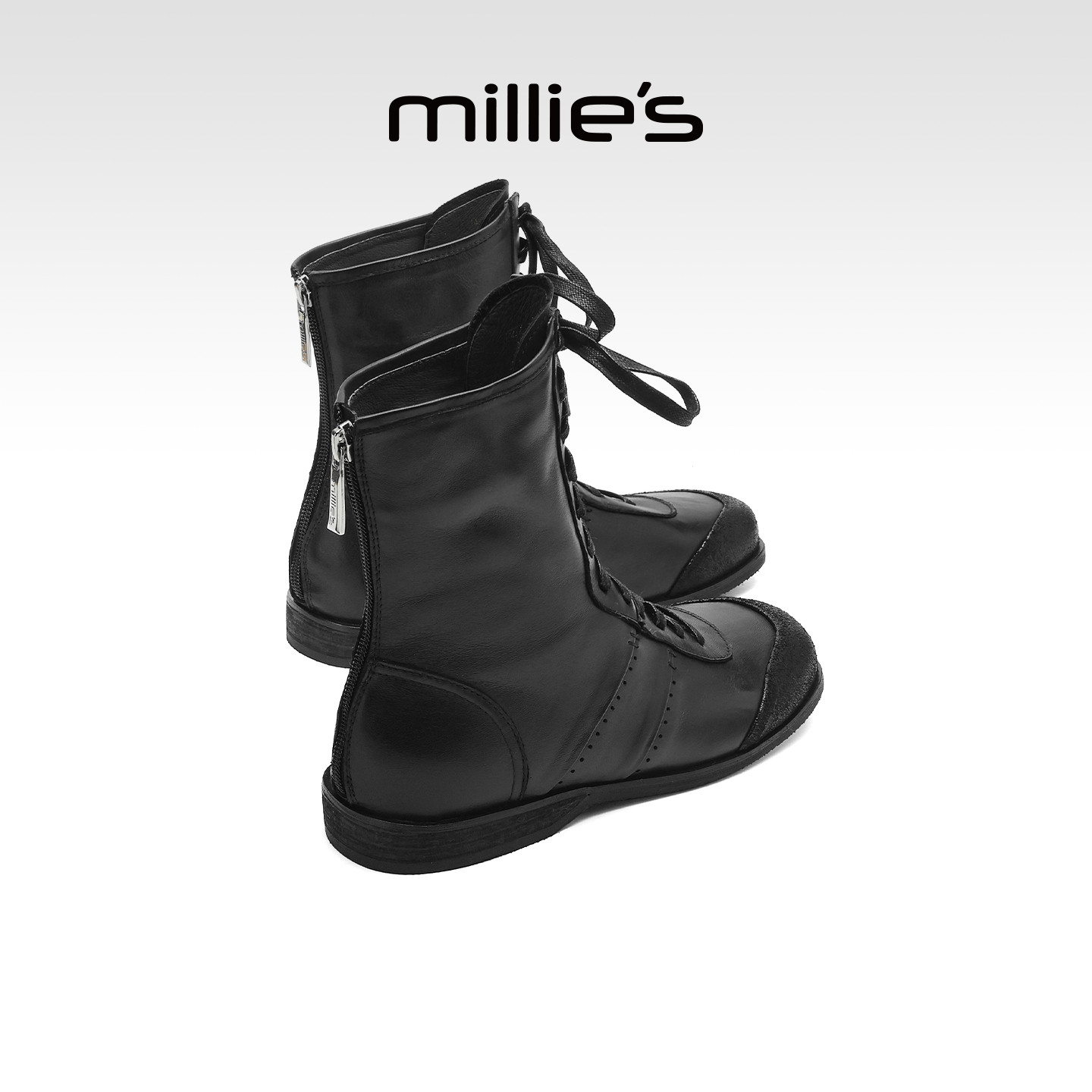millies妙丽女鞋马丁靴新款加绒短靴显瘦时尚百搭瘦瘦女靴英伦风
