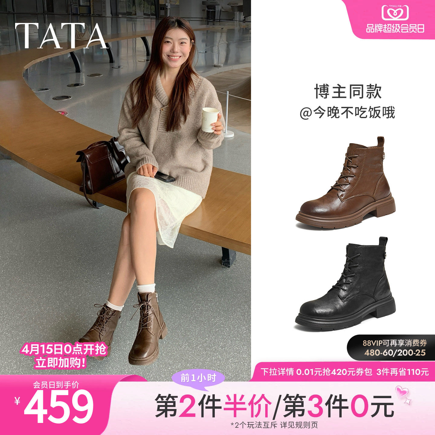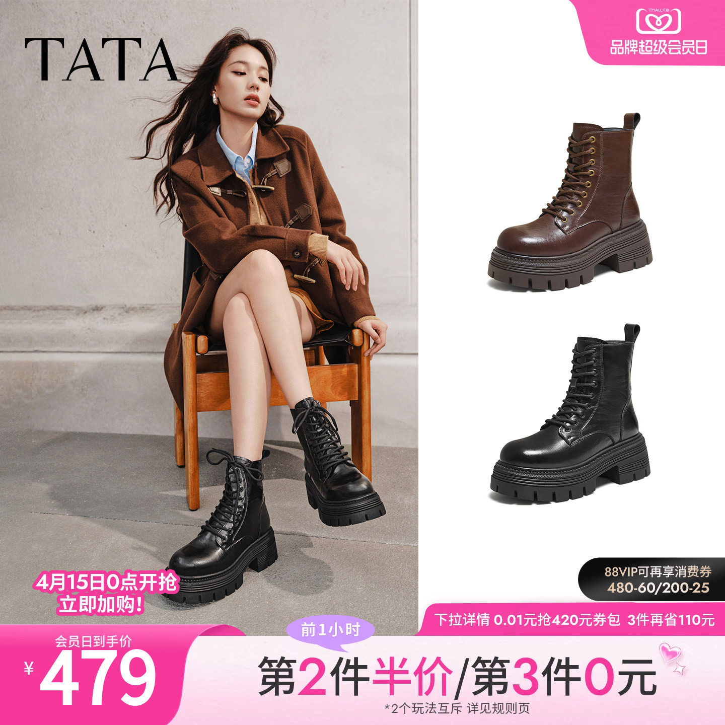 Tata他她靴子经典英伦风复古加绒马丁靴厚底女靴真皮短靴WUY02DZ4
