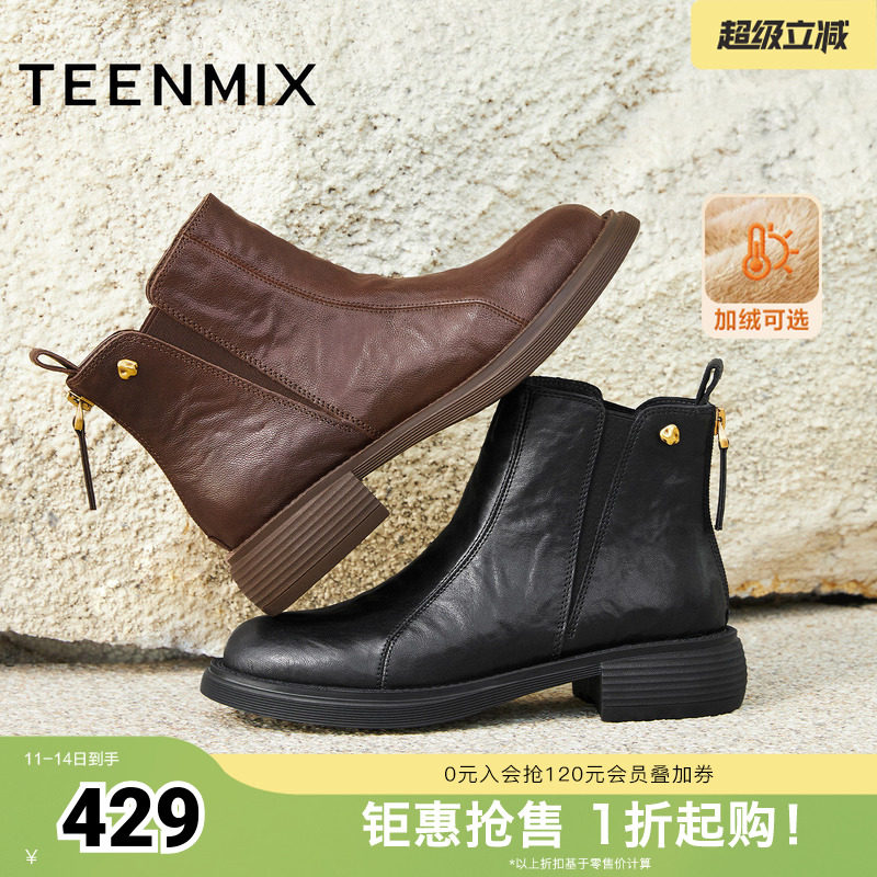 天美意冬新款商场同款英伦复古百搭短靴女切尔西靴BM071DD5