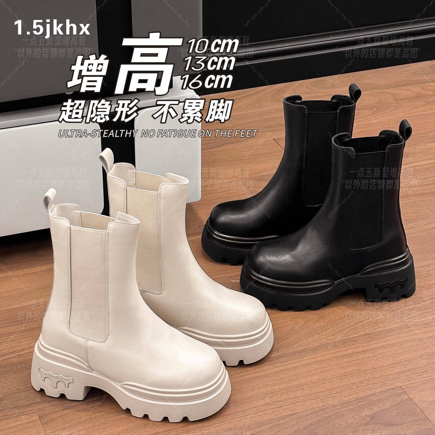 一点五隐形增高16-10CM女士短靴女士真皮切尔西鞋子经典英伦风