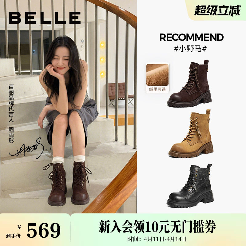 红蜻蜓女鞋冬季新款鞋子女士靴子马丁靴女秋冬真皮加绒短靴英伦风