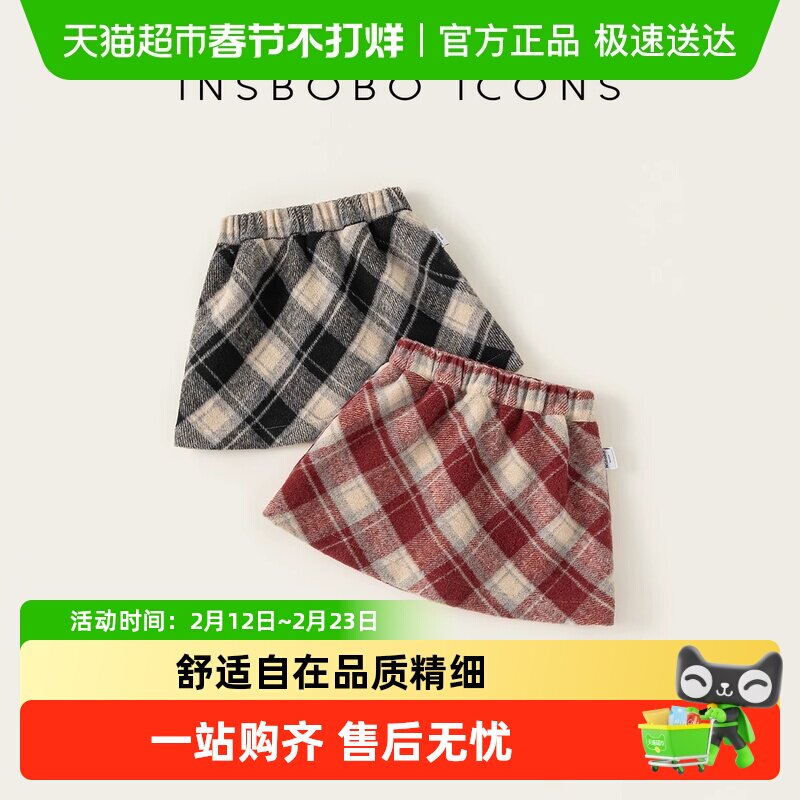 INSbobo女童半身裙秋冬新款儿童裙子复古格子裙童装女宝衣服春季