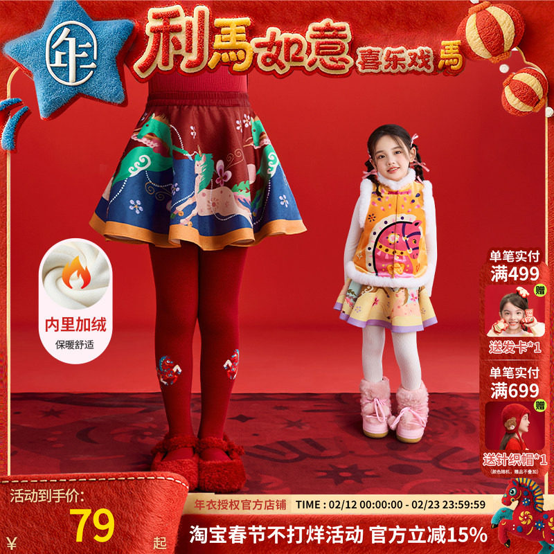 年衣童装半身裙短裙冬季新款女童短款裙子新中式公主国风生肖年服