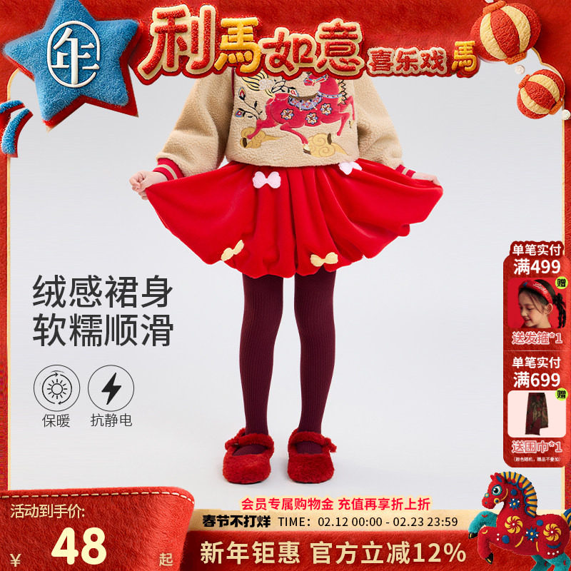 女童半身裙红色裙子儿童冬季短裙过年冬装新年衣服女孩秋冬蓬蓬裙