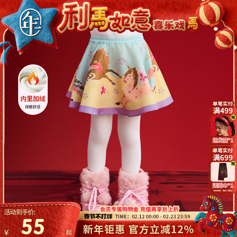 【商场同款】papa爬爬冬季女童裙子洋气时髦保暖加厚百搭半身裙