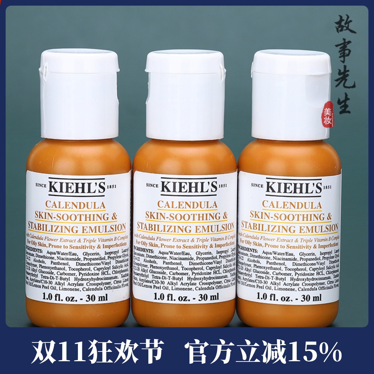 3瓶装 科颜氏金盏花舒缓平衡乳液30ml小样 补水保湿控油乳液