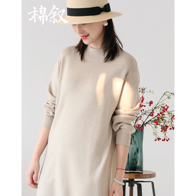 棉叙秋冬文艺通勤长款毛衣裙纯色套头半高领内搭连衣裙流苏23508