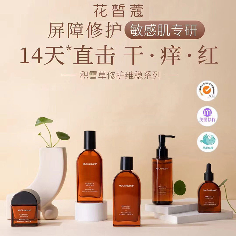 花皙蔻水乳套装积雪草修护维稳水霜冻干粉套盒护肤品修复补水正品