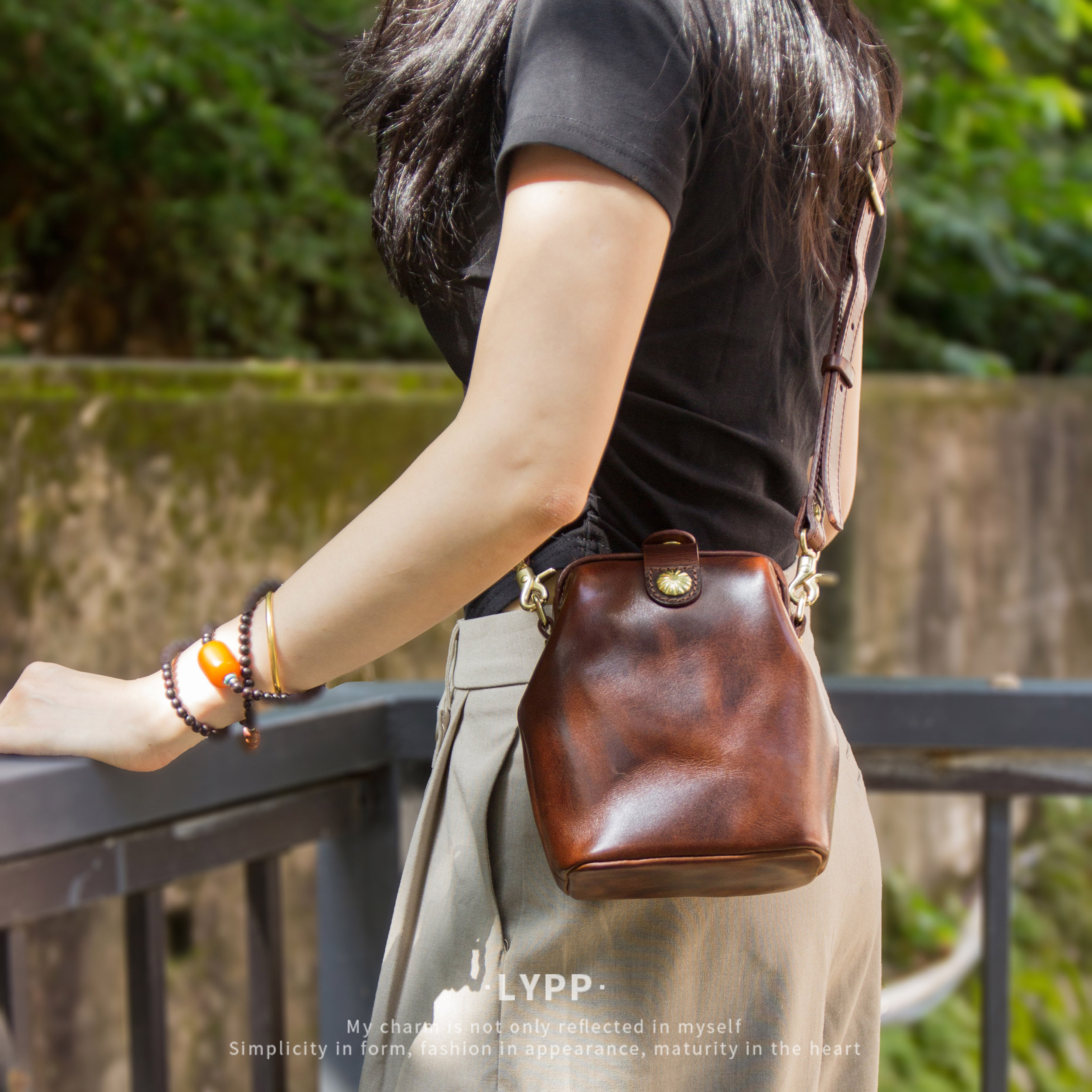 牧石皮艺手工定制牛皮小包新款女士斜跨复古医生包真皮日式口金包