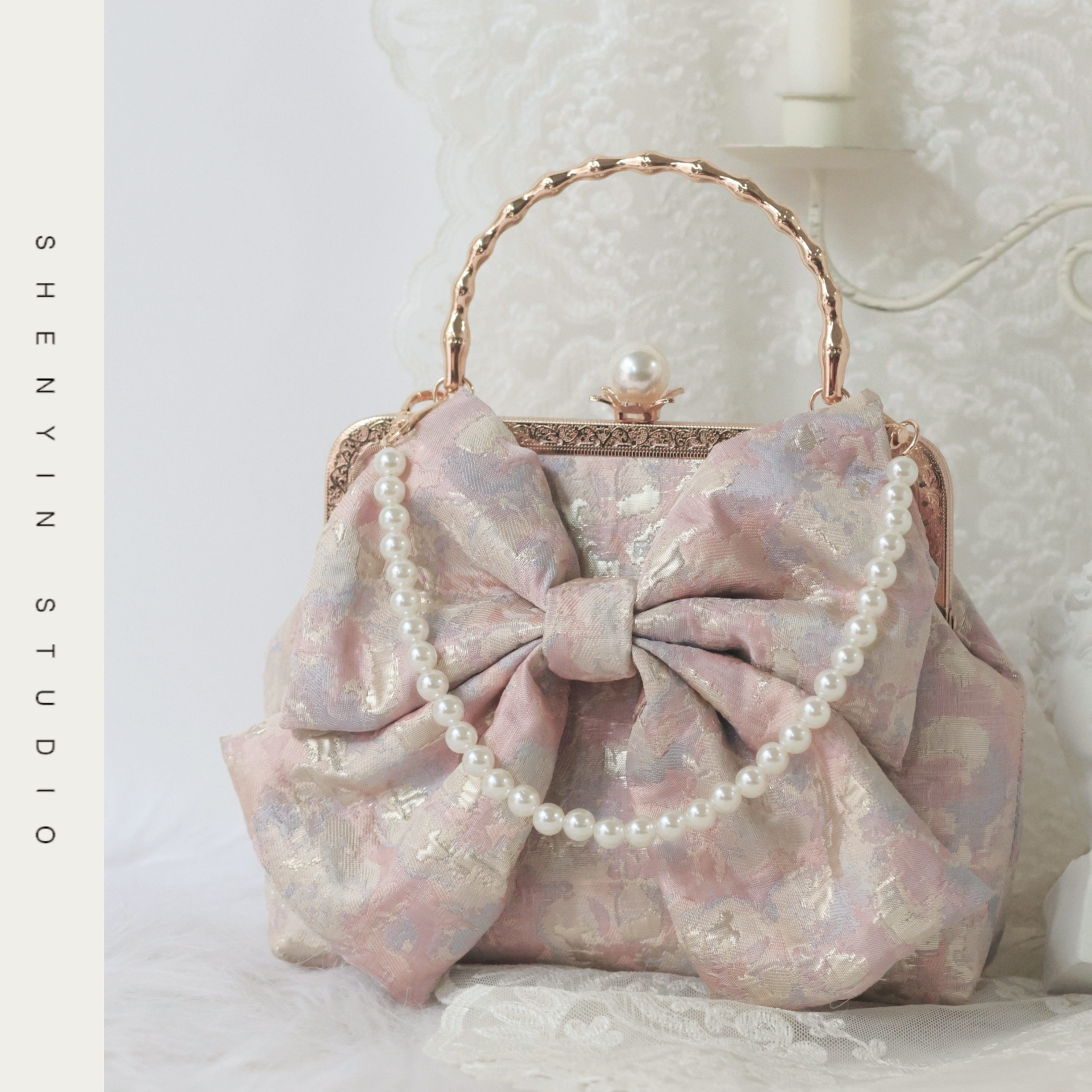 神隐手作原创蝴蝶结人鱼姬可爱lolita旗袍包包珍珠斜挎口金包2022