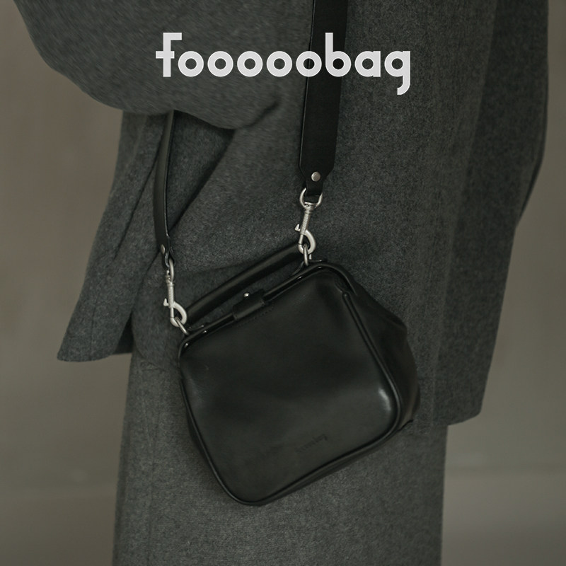 fooooobag植鞣系列「口金云朵吐司包」头层牛皮手提黑色百搭女包