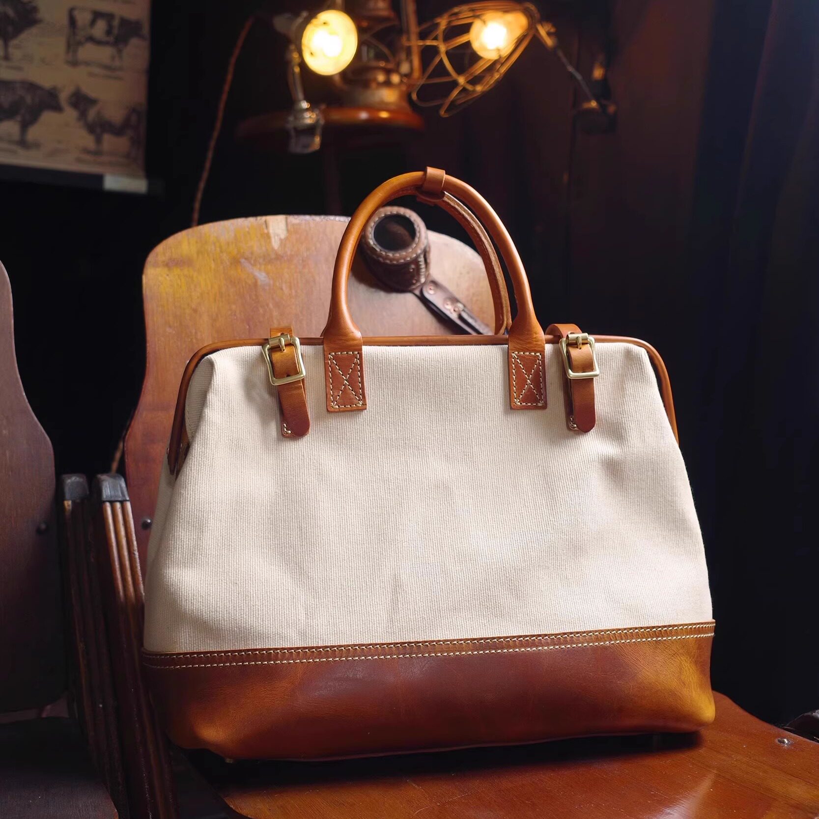 牧石MOOSHI手工定制包袋医生包牛皮小包迷你真皮口金包女复古包包
