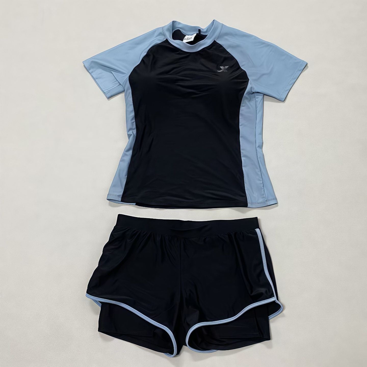 666折扣 女保守分体锦纶平角裤泳衣学生遮肉显瘦温泉游泳速干套装