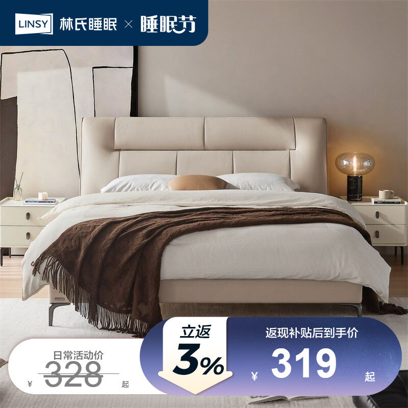 林氏家居2024新款现代简约卧室真皮软包床双人床头层牛皮政府补贴