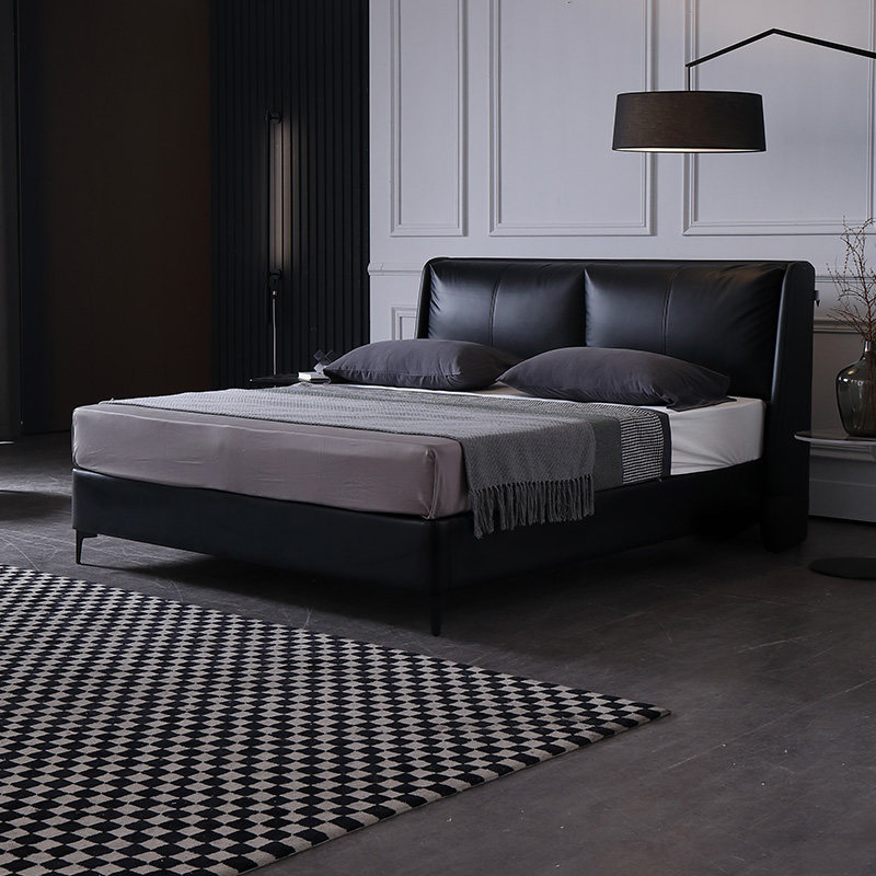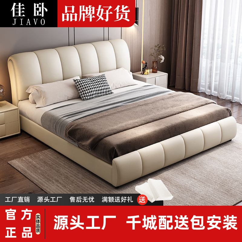 晚安真皮轻奢床双人床意式框架结构主卧床 北欧现代婚床1.8米皮床