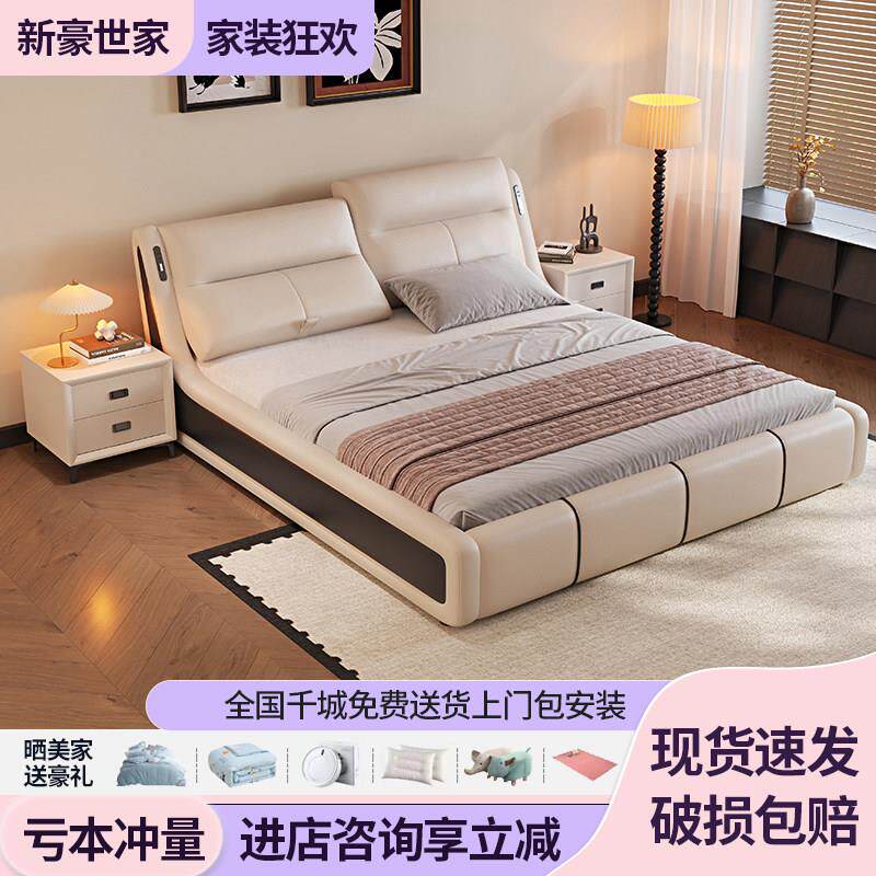 智能按摩多功能真皮大床2米x2米2榻榻米床双人主卧高端大气婚床